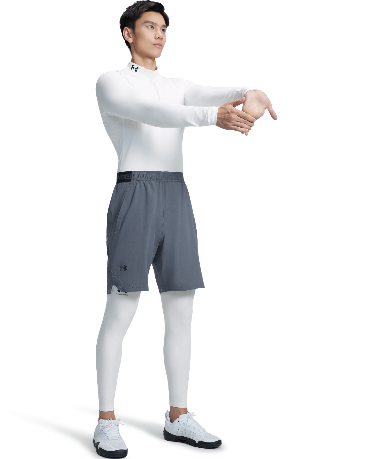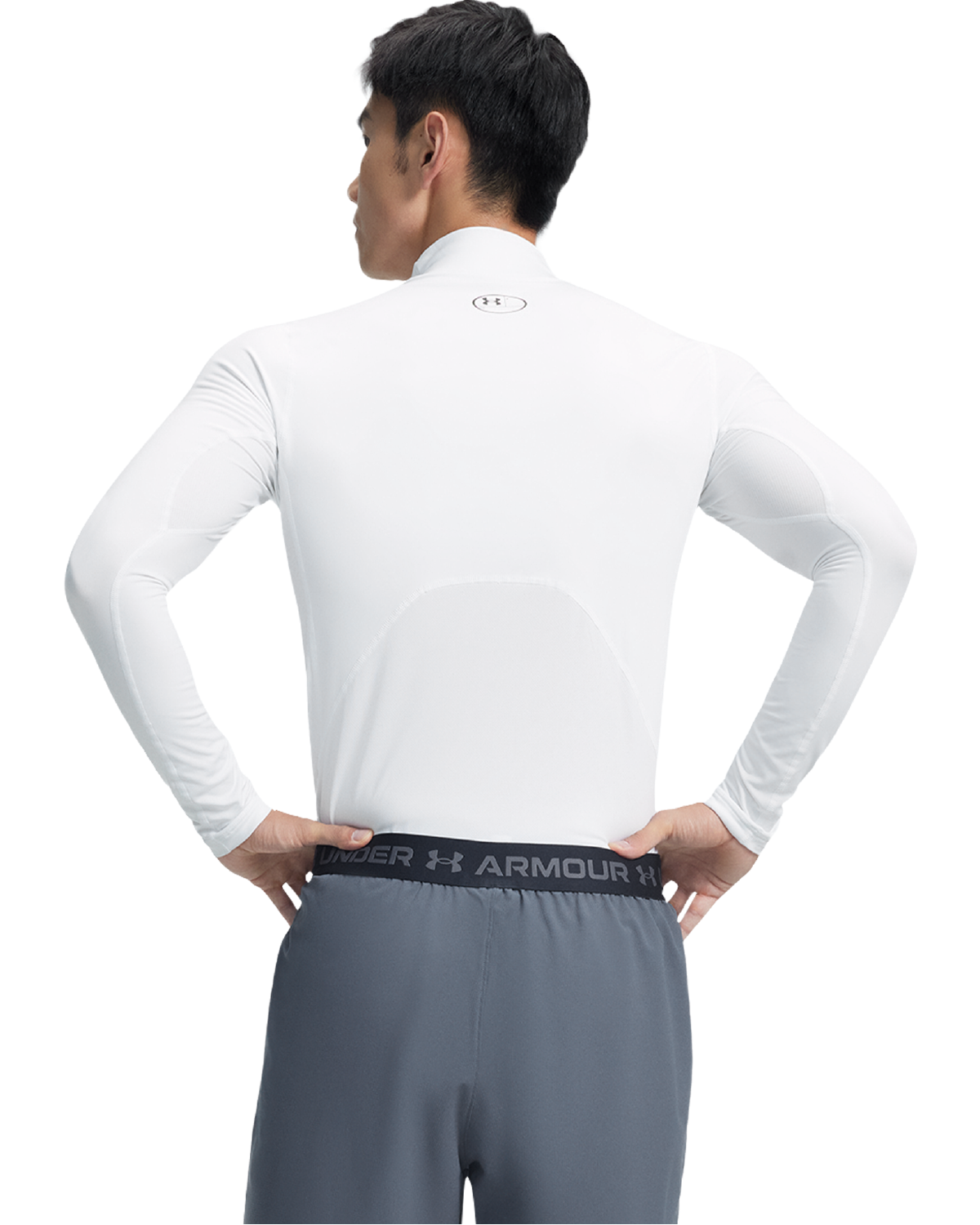 背部与腋下采用弹力网眼布拼接,有助于提升透气性。