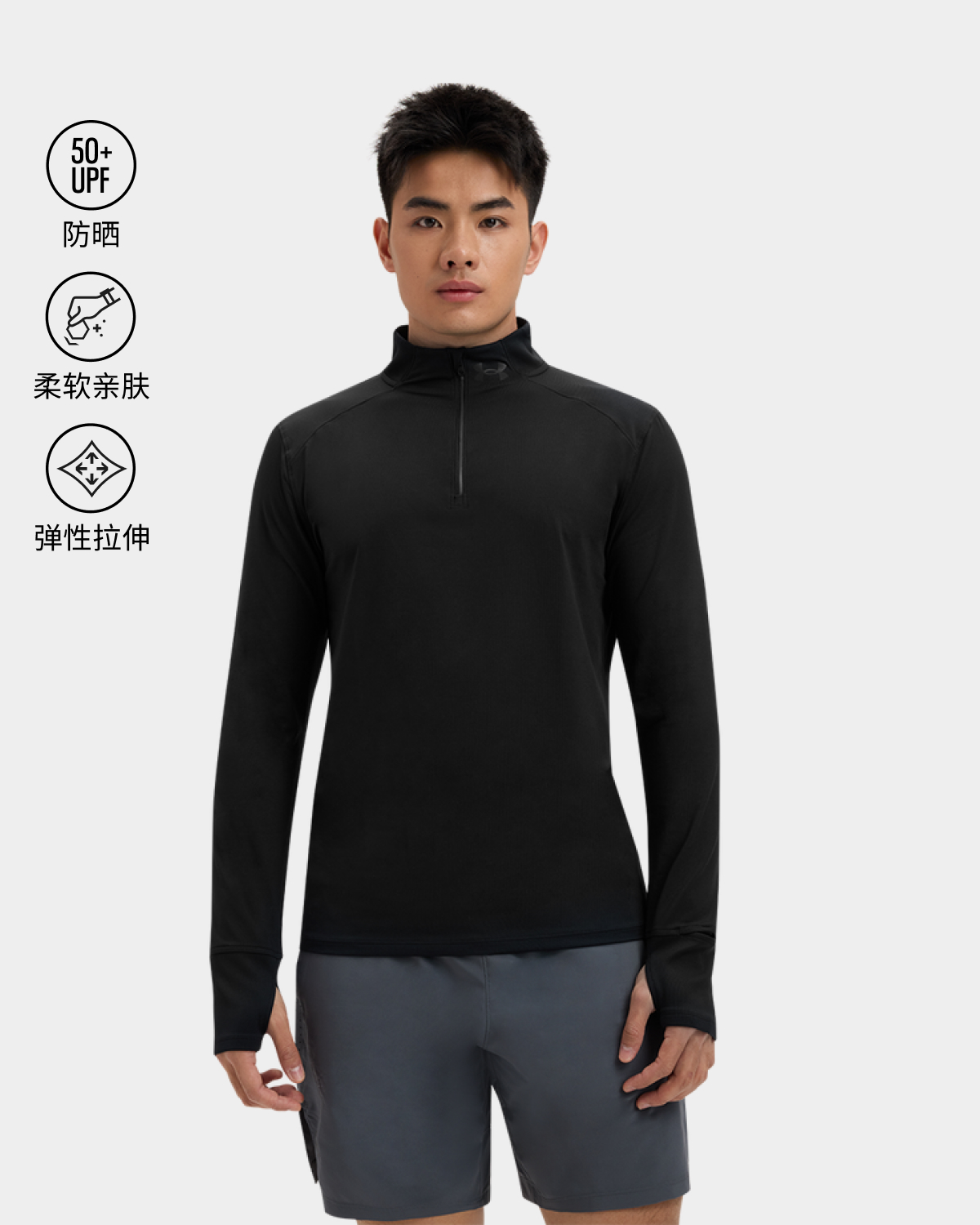 1/4拉链设计,搭配反光logo与拉链,有助于改善弱光环境中跑步的安全性。