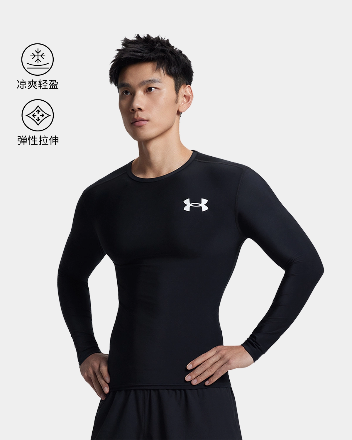 HeatGear®面料干爽轻盈,质感舒柔软适。
