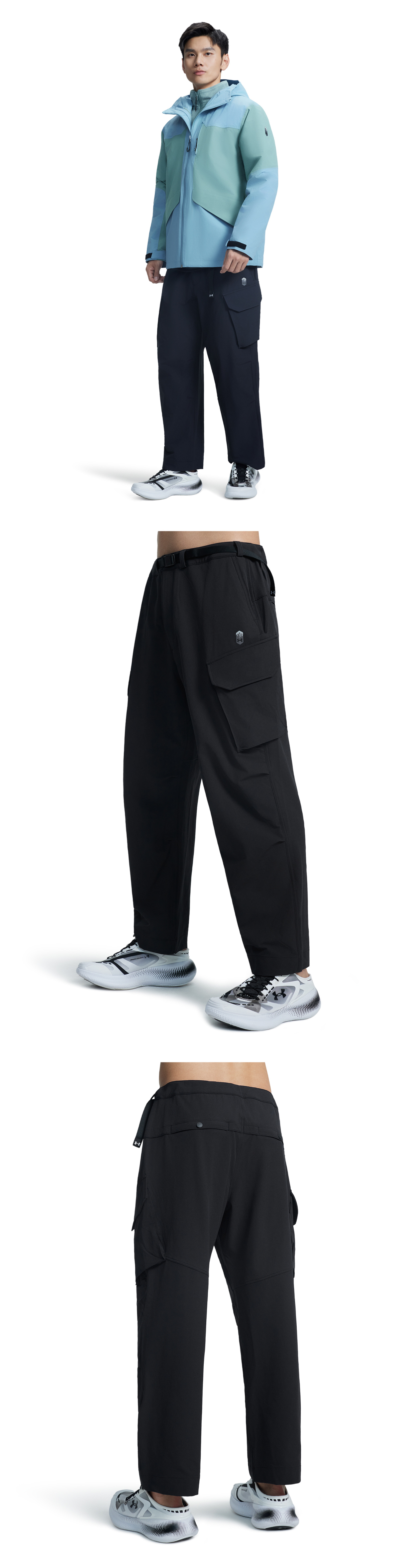 大腿外侧和后腰设有摁扣口袋,方便携带随身物品。