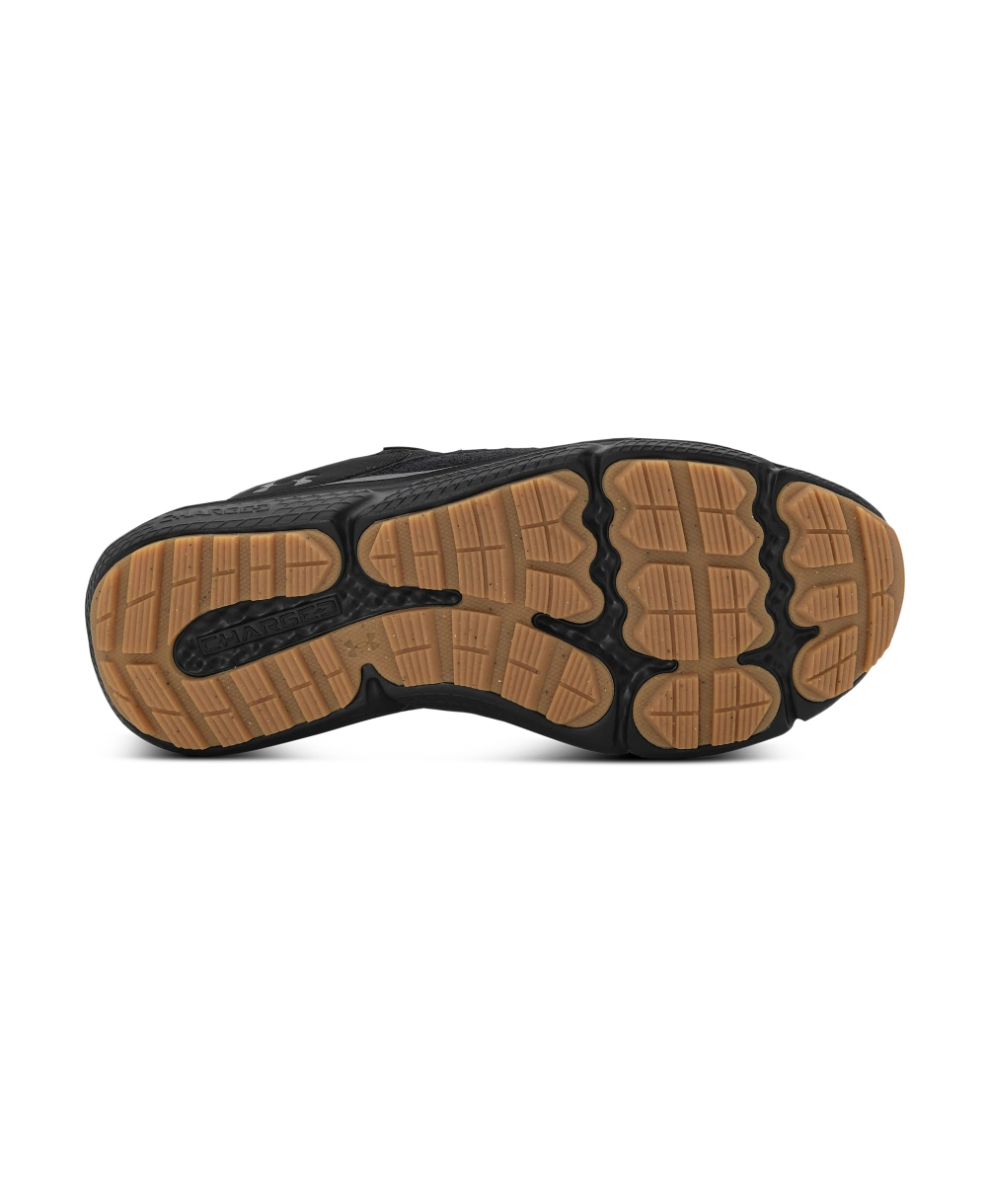 凸粒橡胶外底可在马路与越野路面上提供良好的牵引力与耐久性。