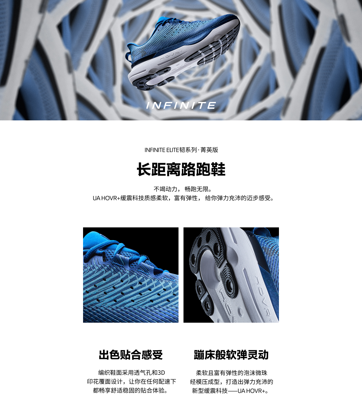 曲形针织鞋面与分区构造精准贴合双足,3D印花元素触感细腻,穿着舒适干爽。