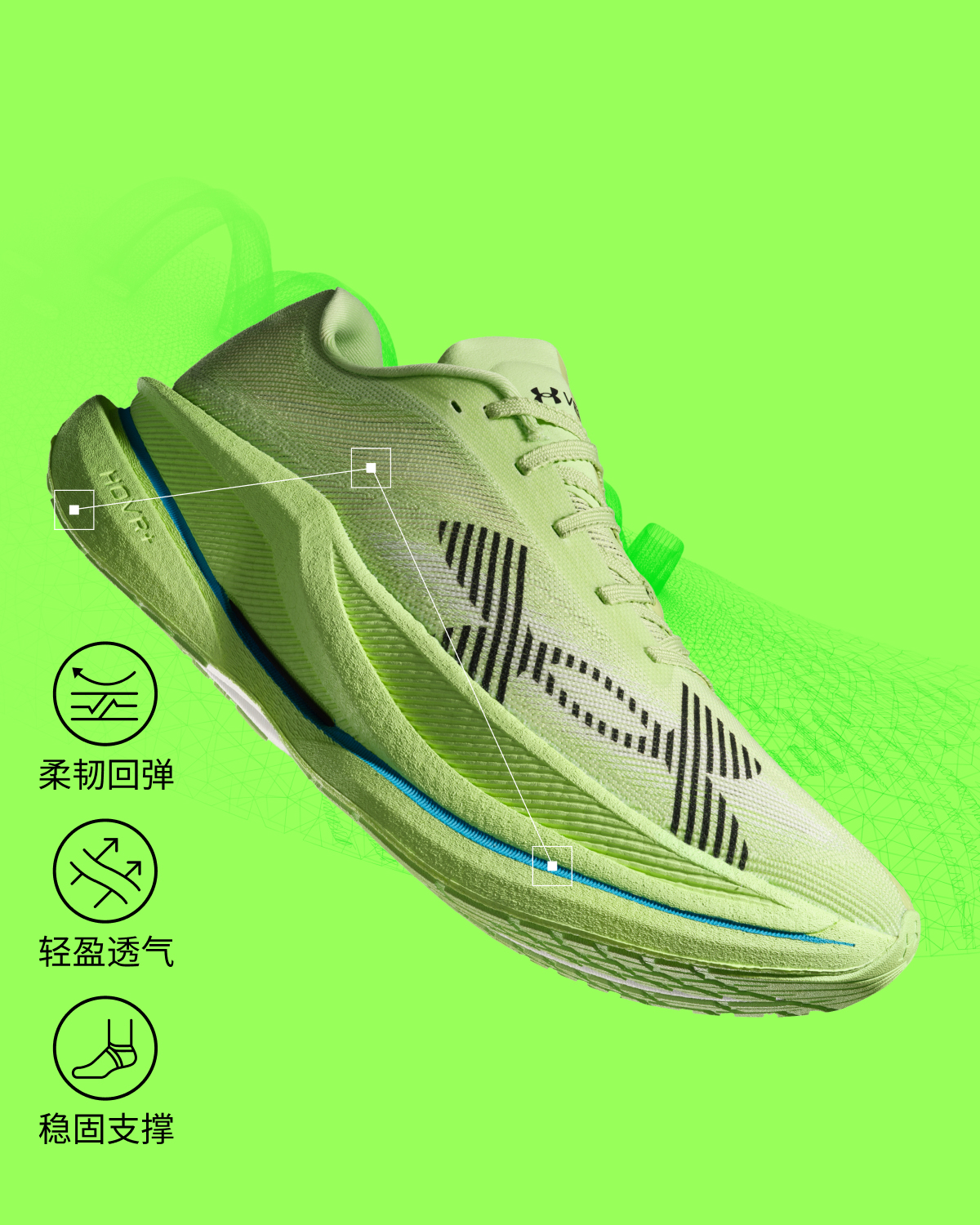 采用复合鞋底构造,HOVR+中底提供灵敏回弹,搭配橡胶外底,带来稳健抓地表现。