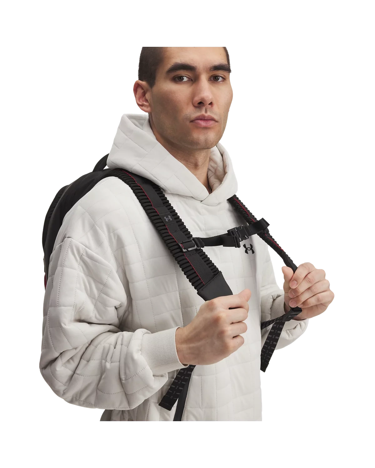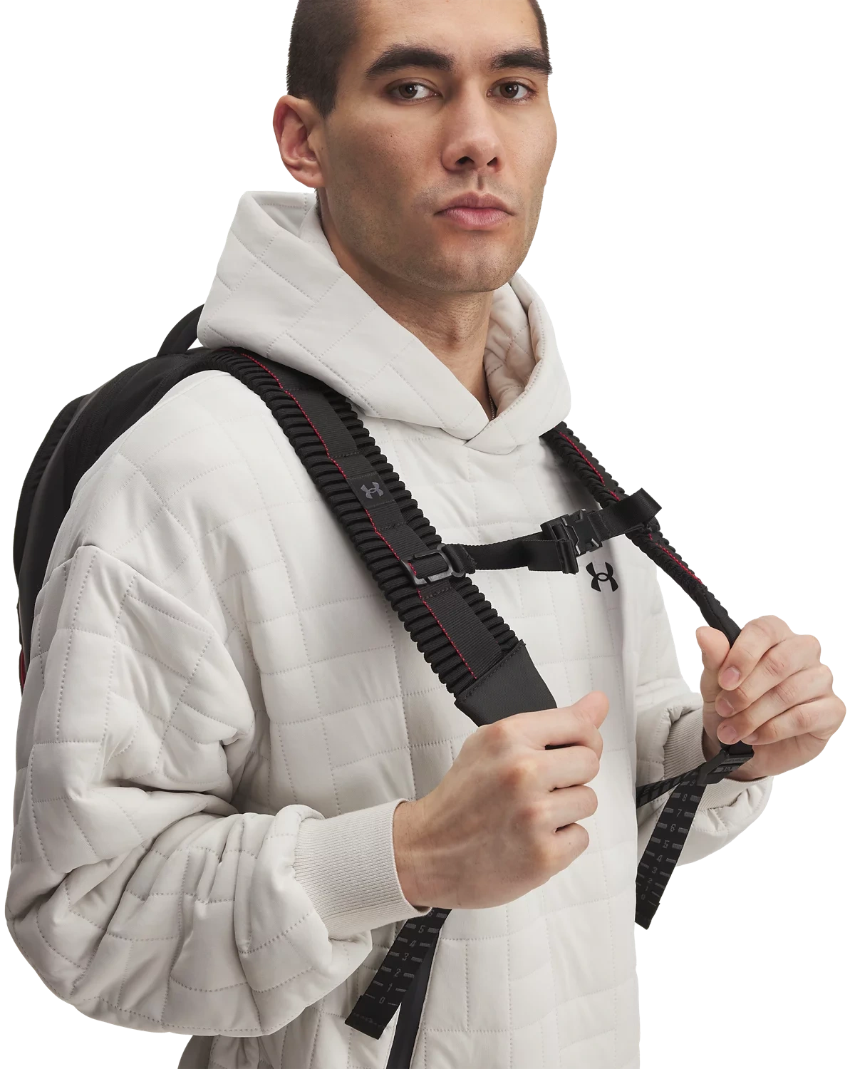 全新UA Suspension肩带采用编织拉胀材料,背携舒适。
