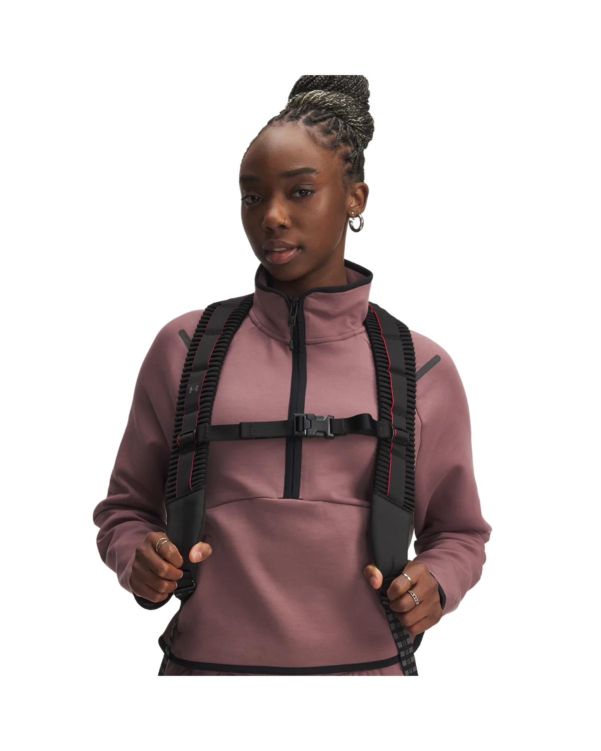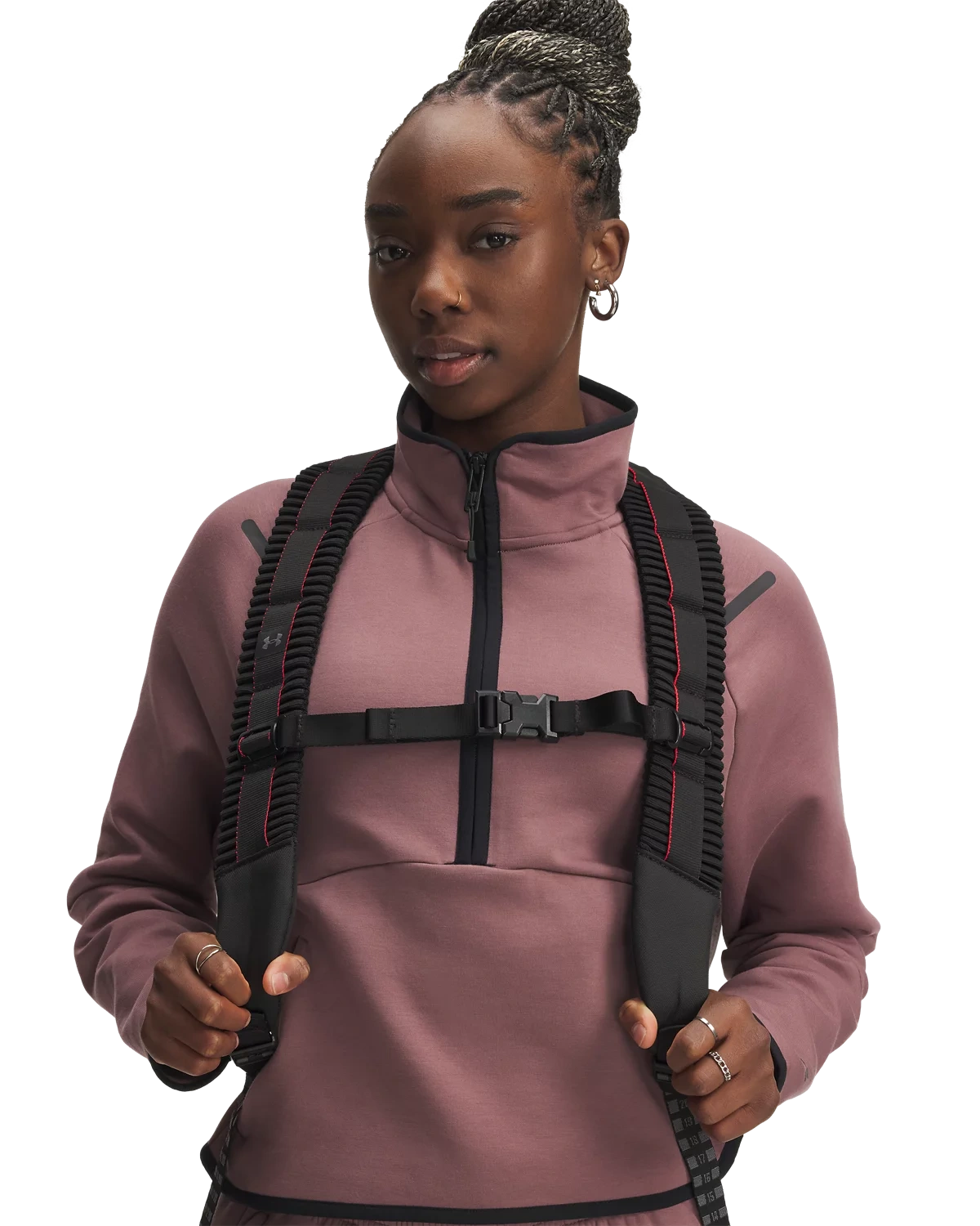 全新UA Suspension肩带采用编织拉胀材料,背携舒适。