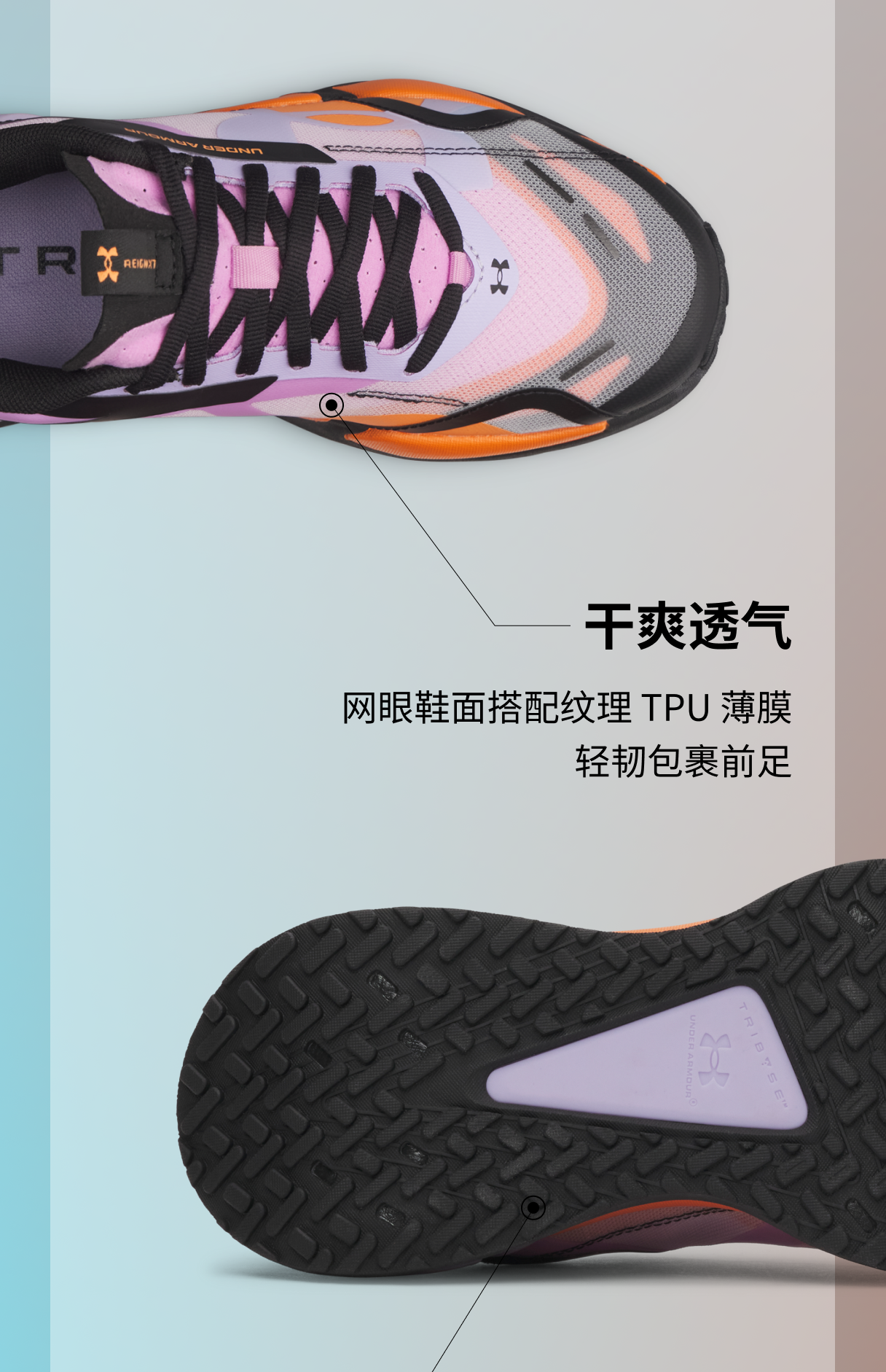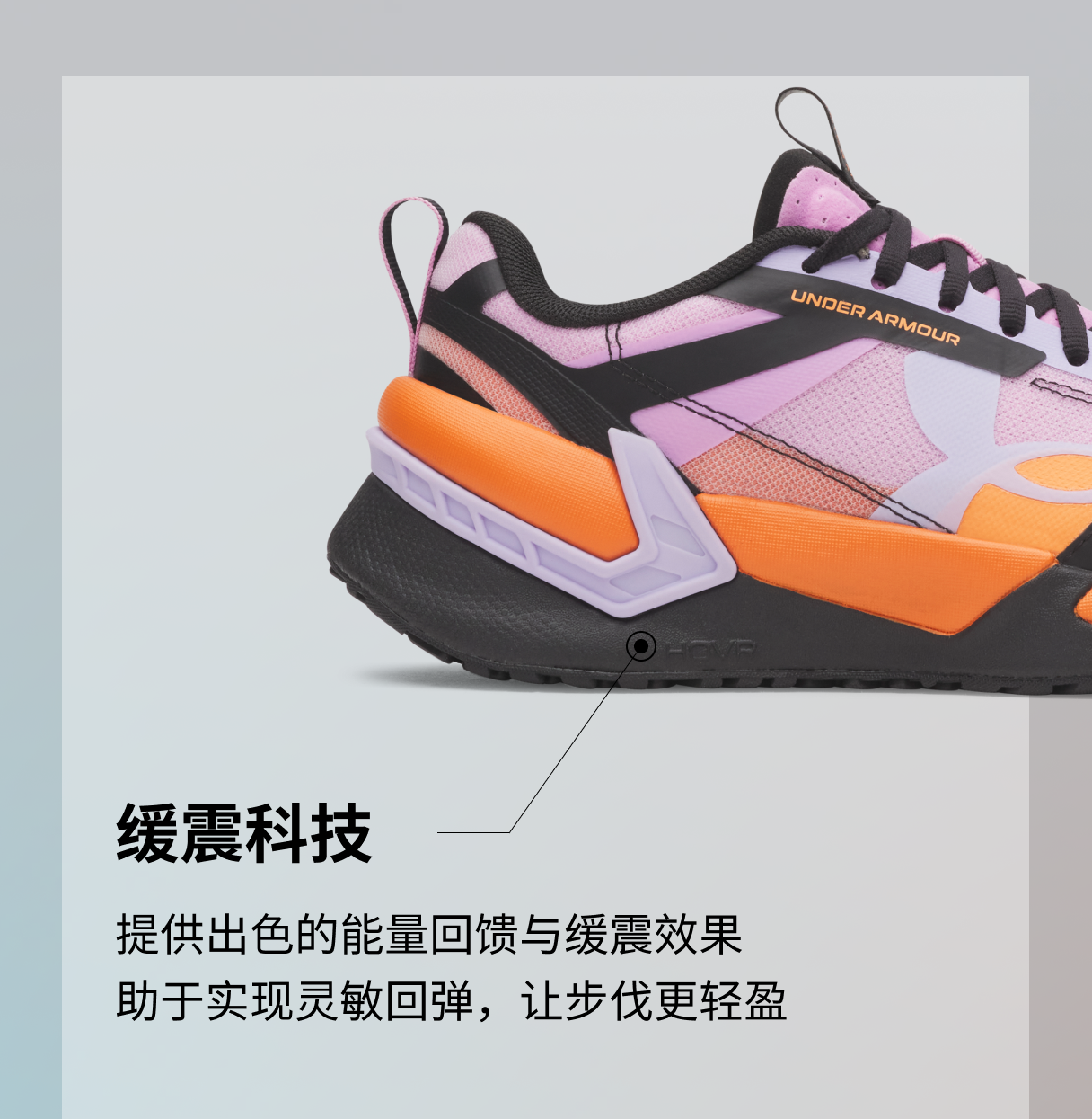 UA TriBase技术扩大与地面的接触面积,有助于提升运动时的稳定性。