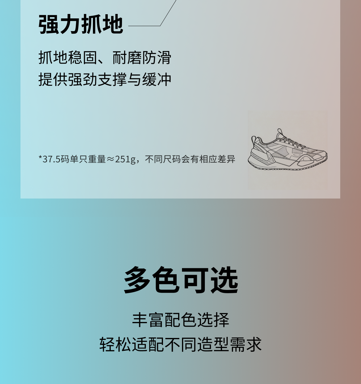 网眼鞋面搭配纹理TPU薄膜,干爽透气。