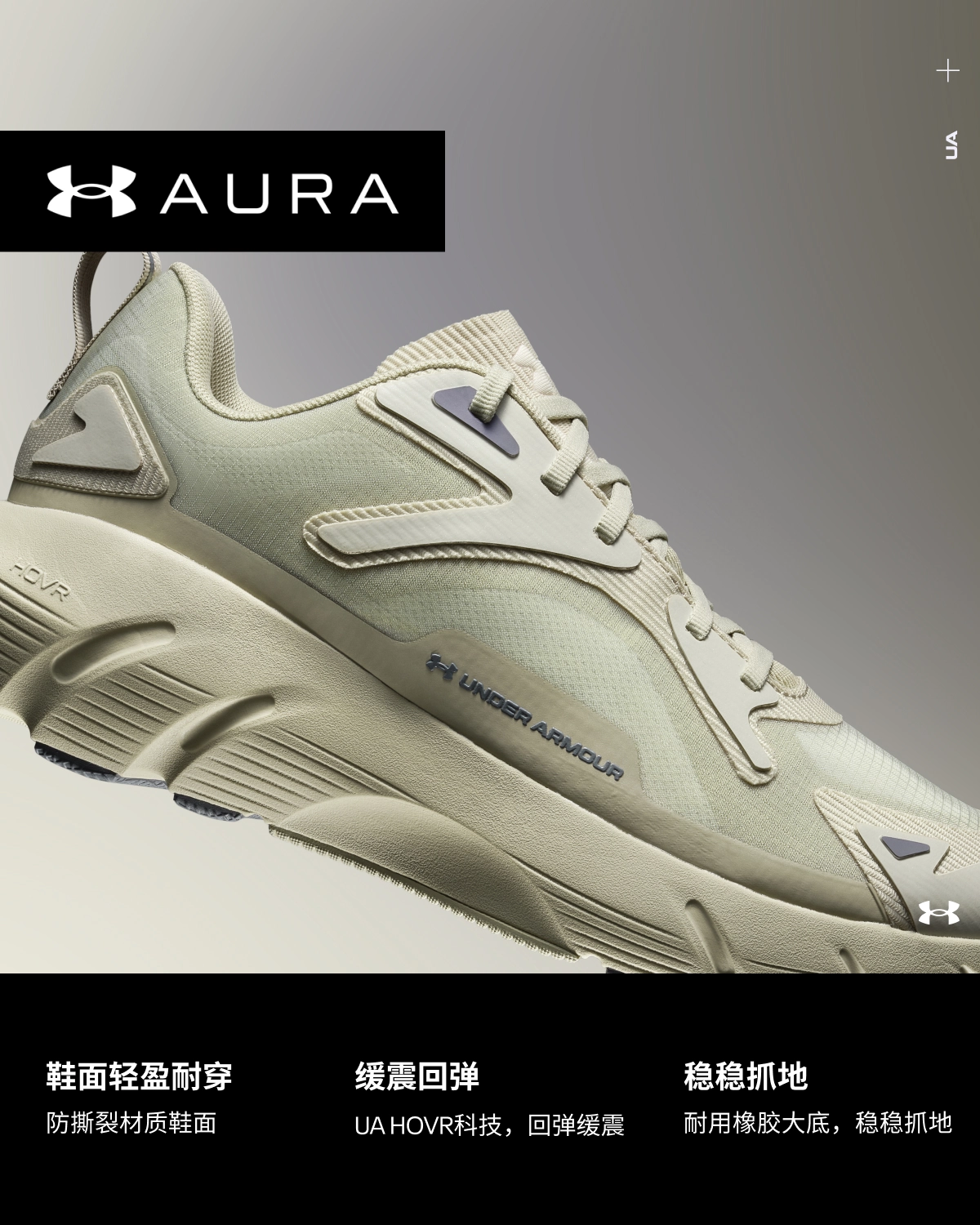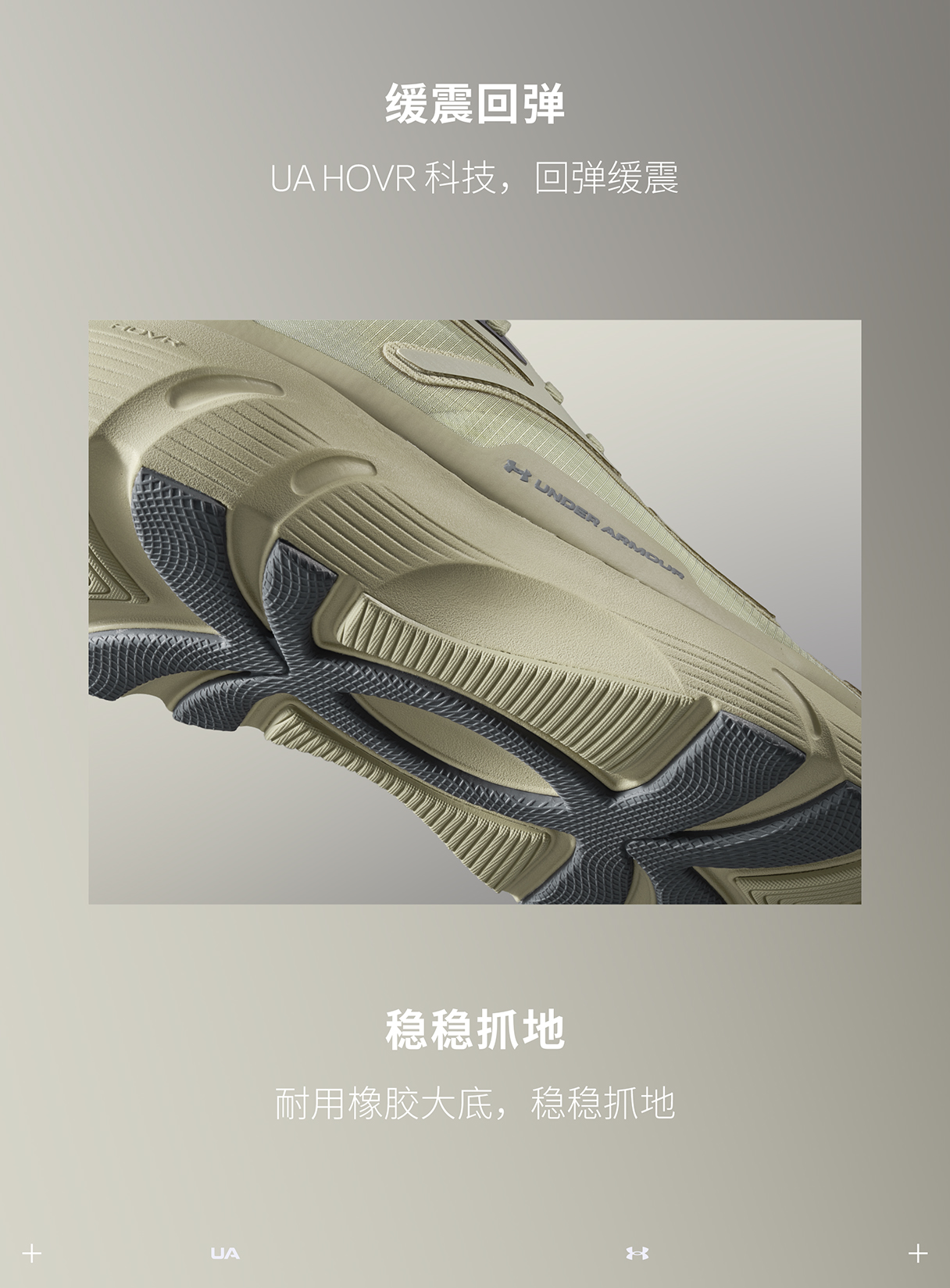 UA HOVR缓震科技,有助于提供出色的能量回馈与缓震效果,灵敏回弹的同时助力脚感更轻盈。