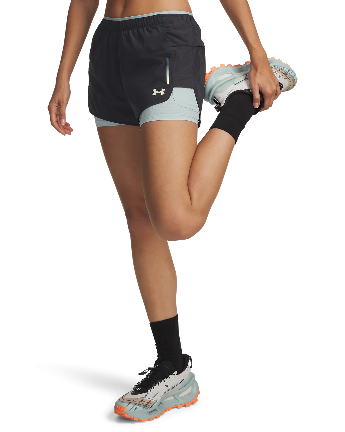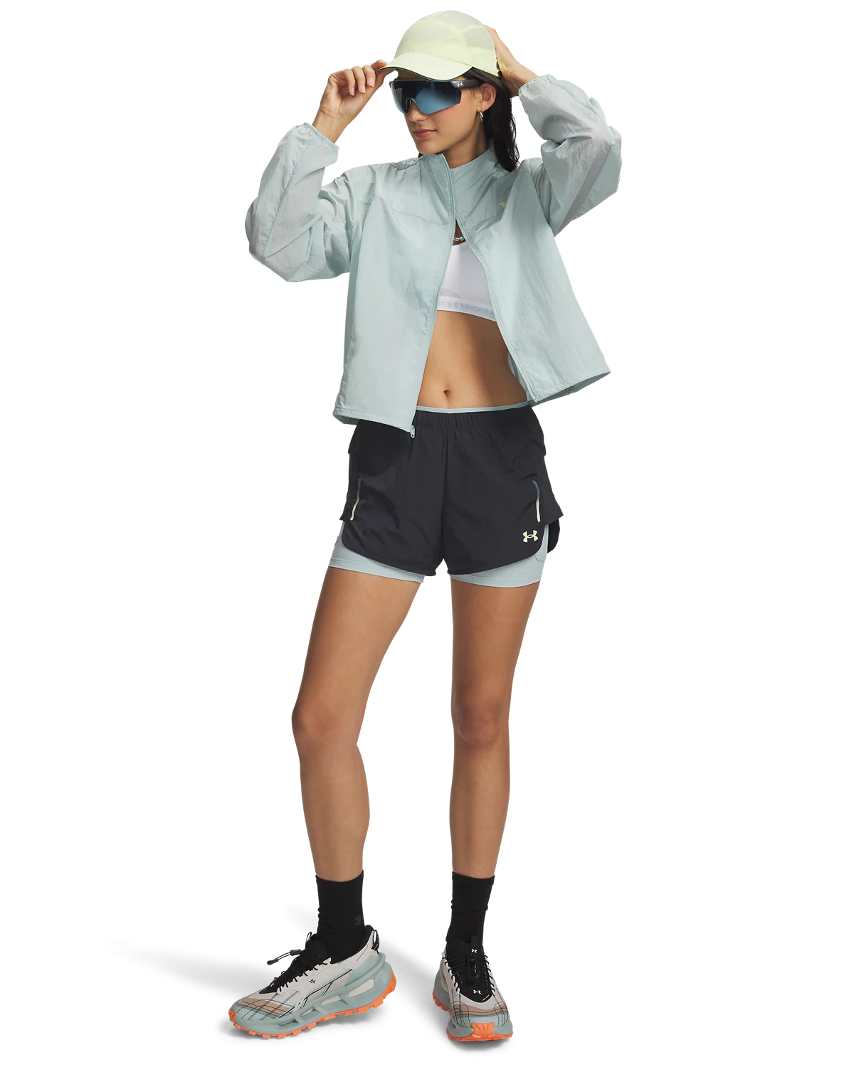 外层纹理梭织面料,轻质舒适,适合越野与路跑等运动。