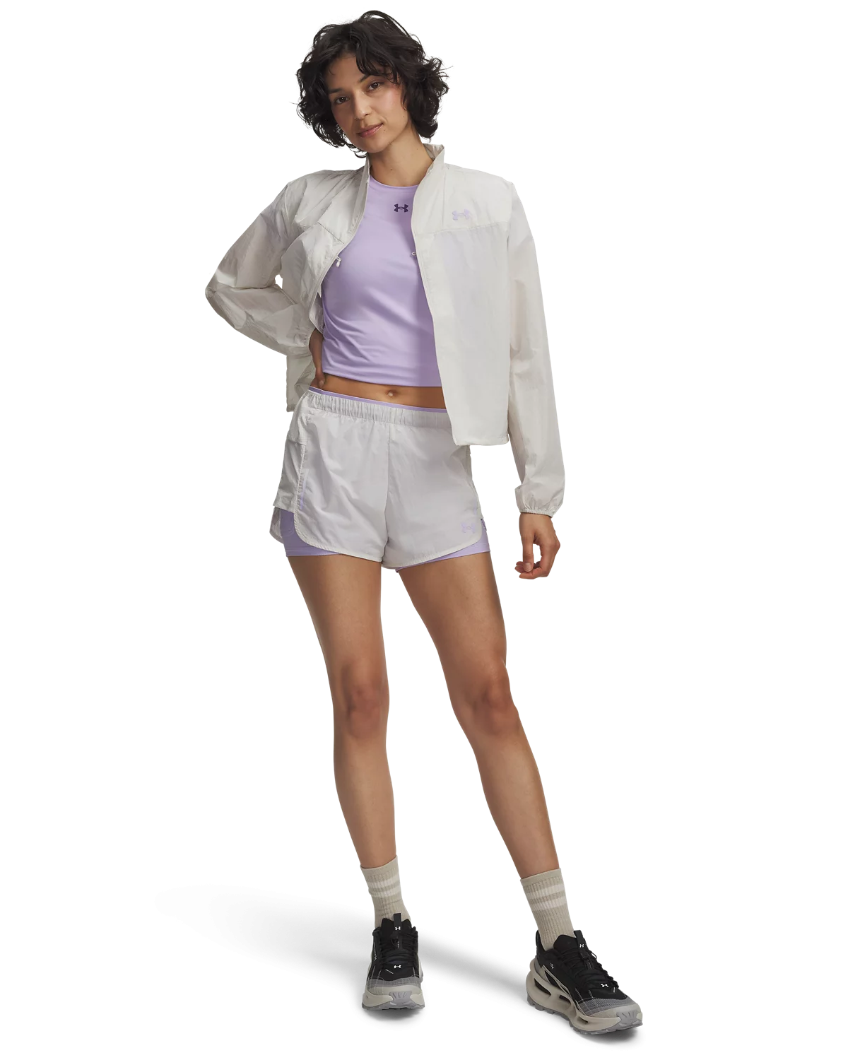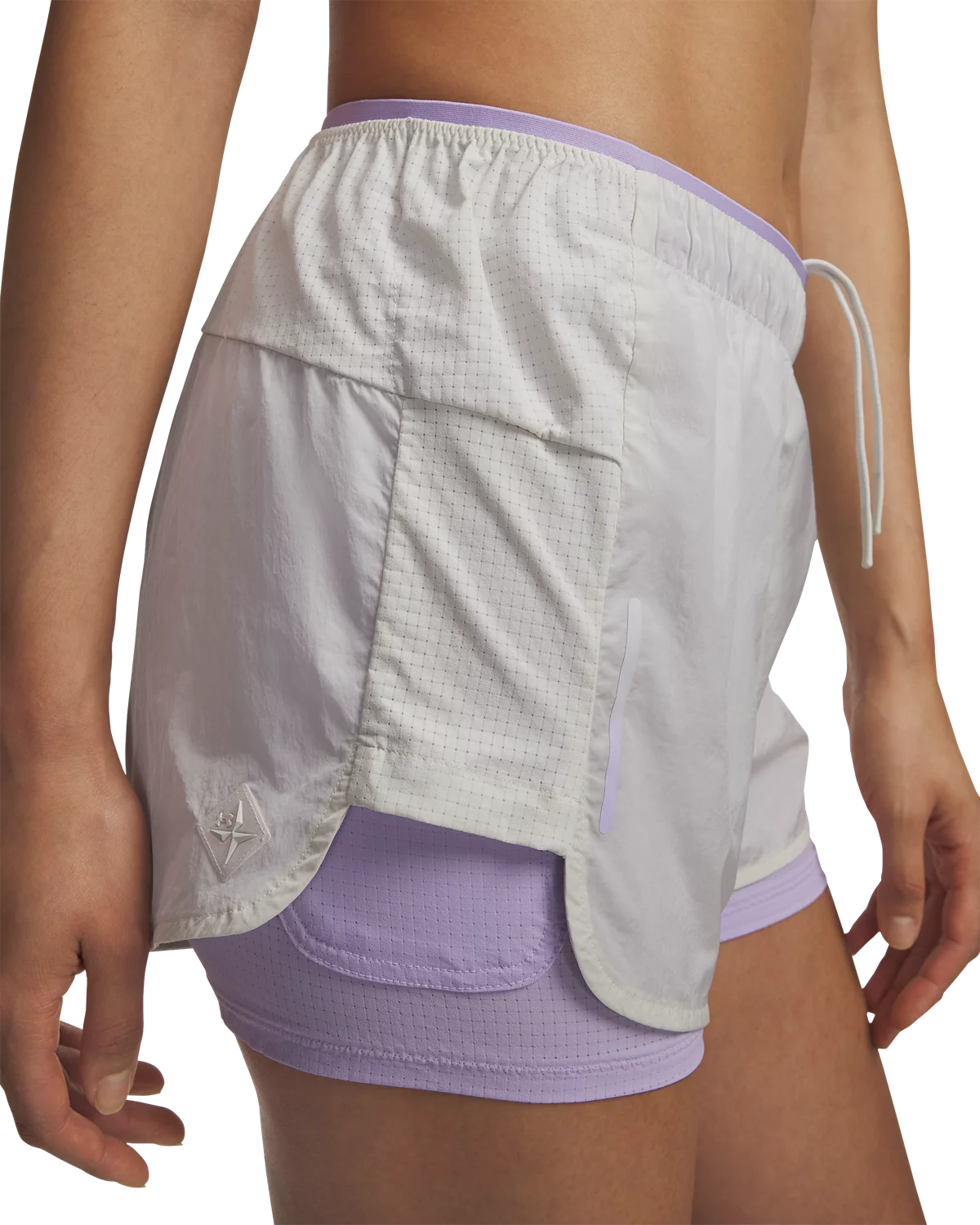 外层纹理梭织面料,轻质舒适,适合越野与路跑等运动。