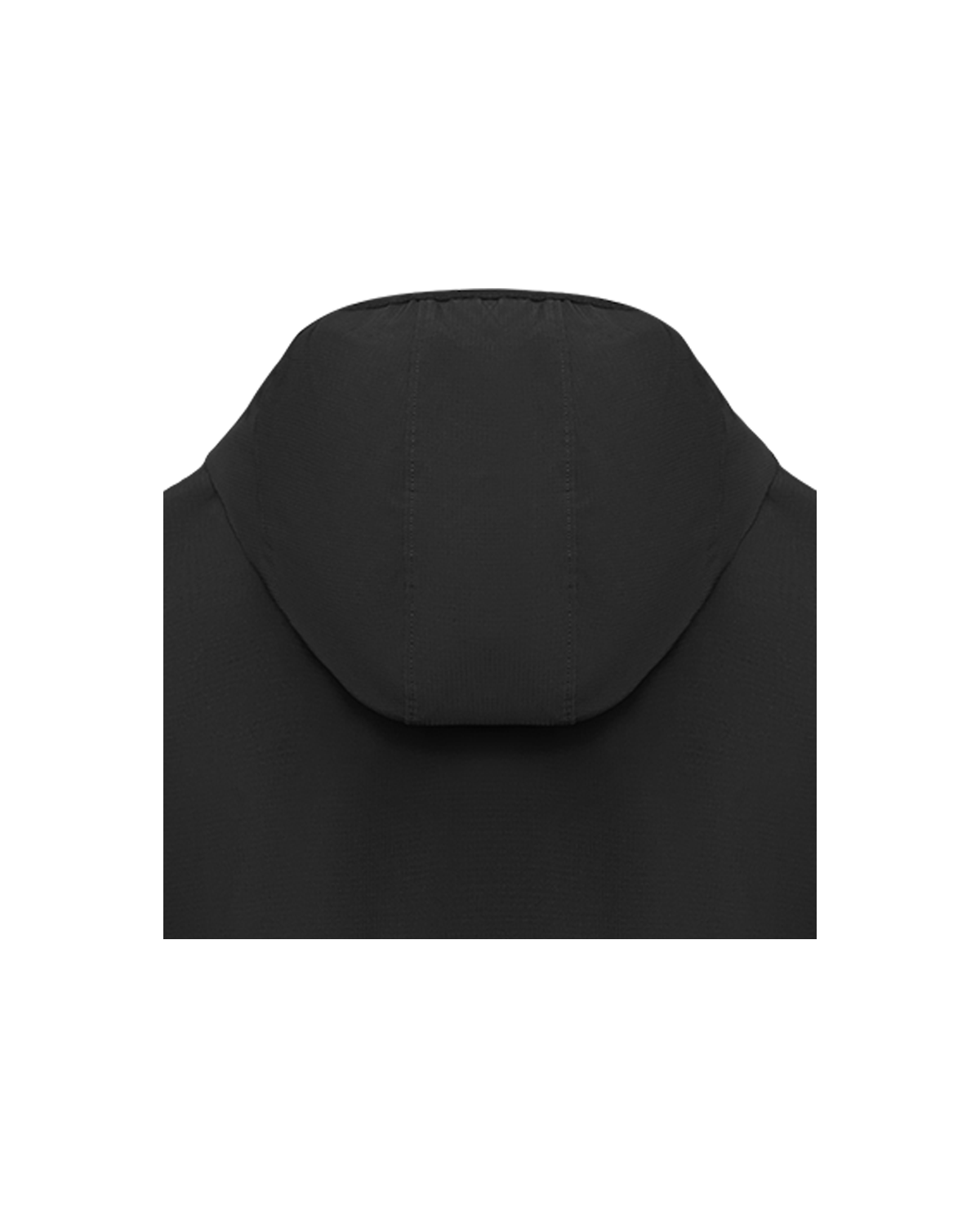 风帽后侧弹力束绳设计,动态贴合头部。