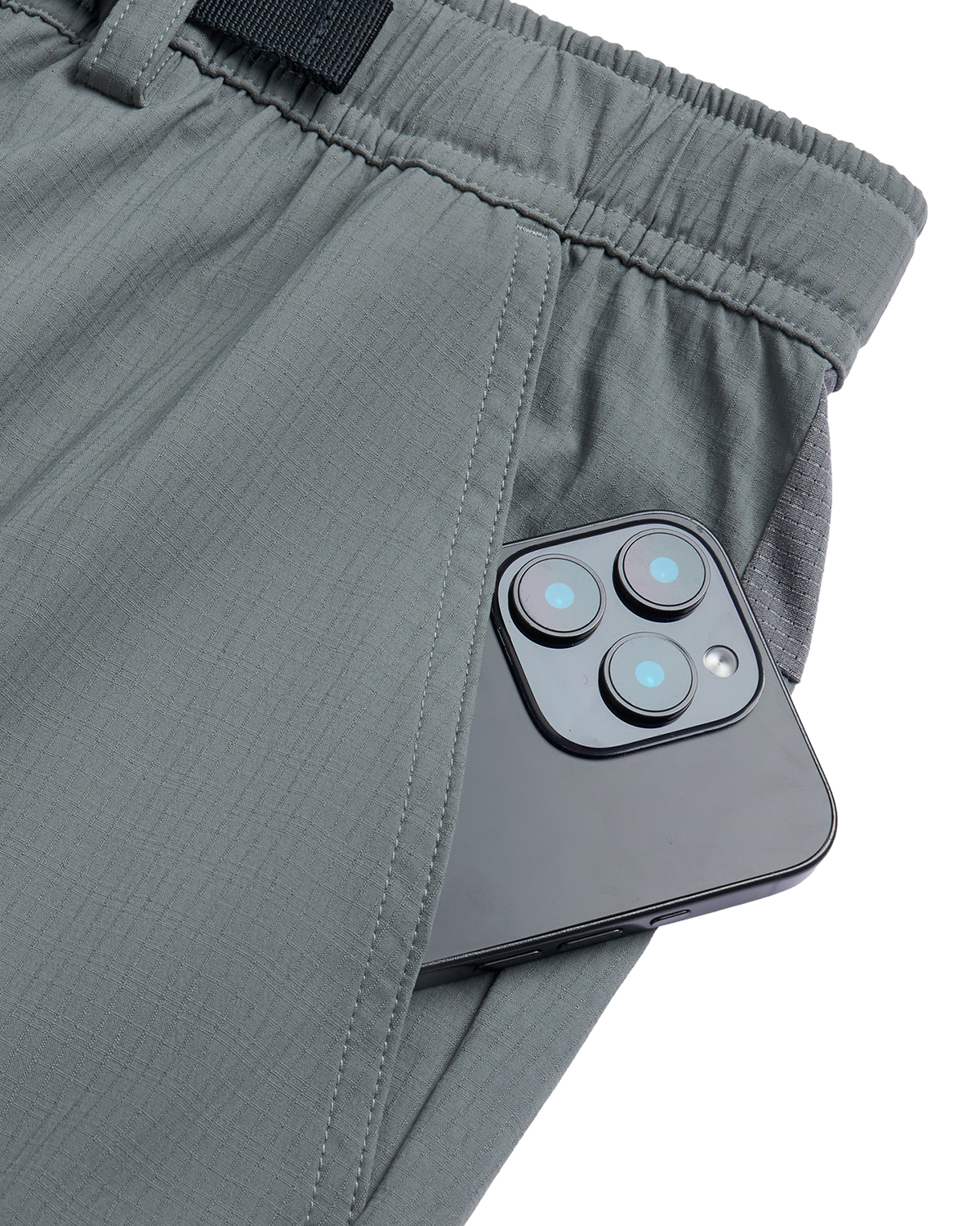 弹力腰带配有织带与搭扣,稳固贴合腰部。