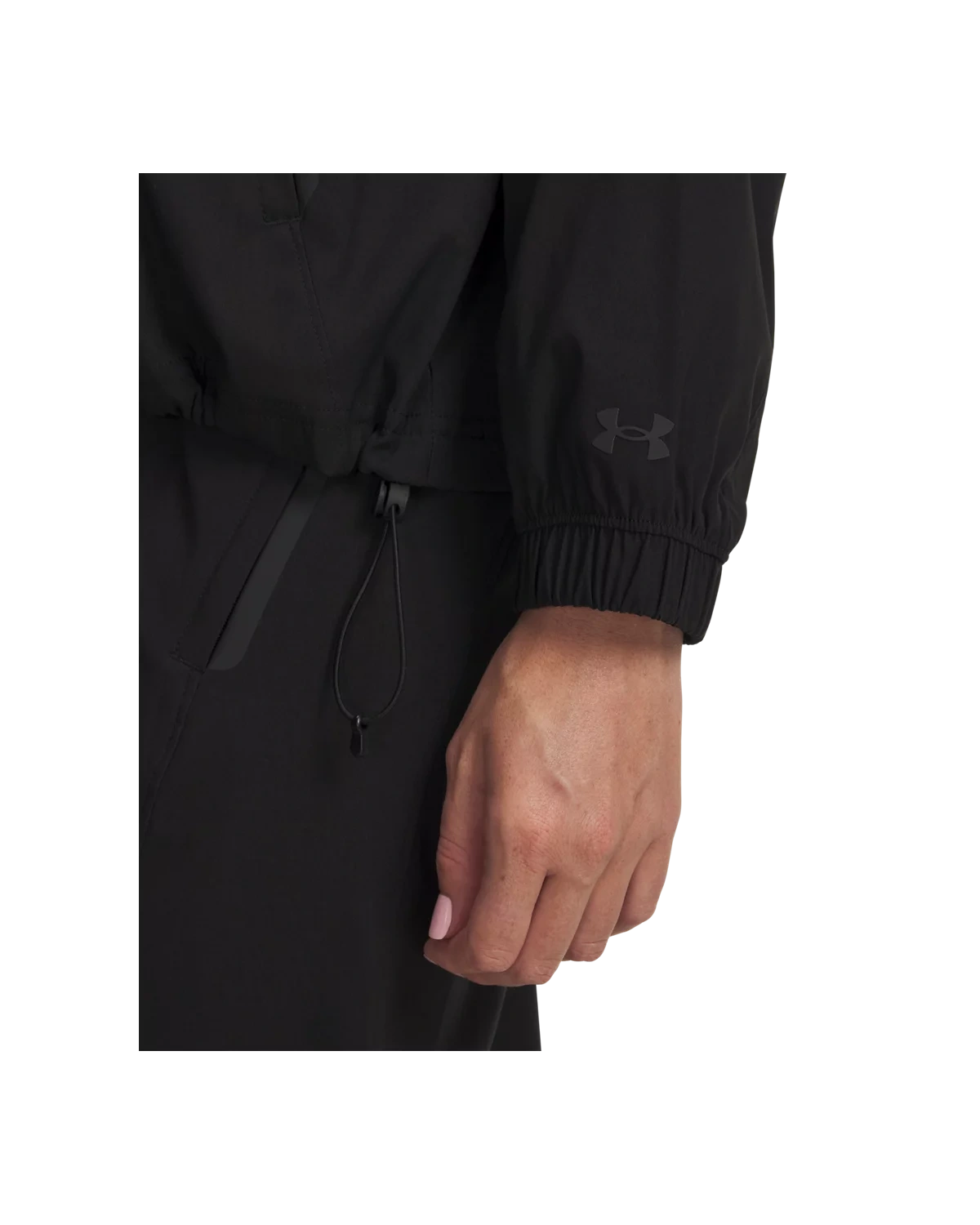 下摆可调节抽绳设计与包边弹力袖口,稳固贴合。