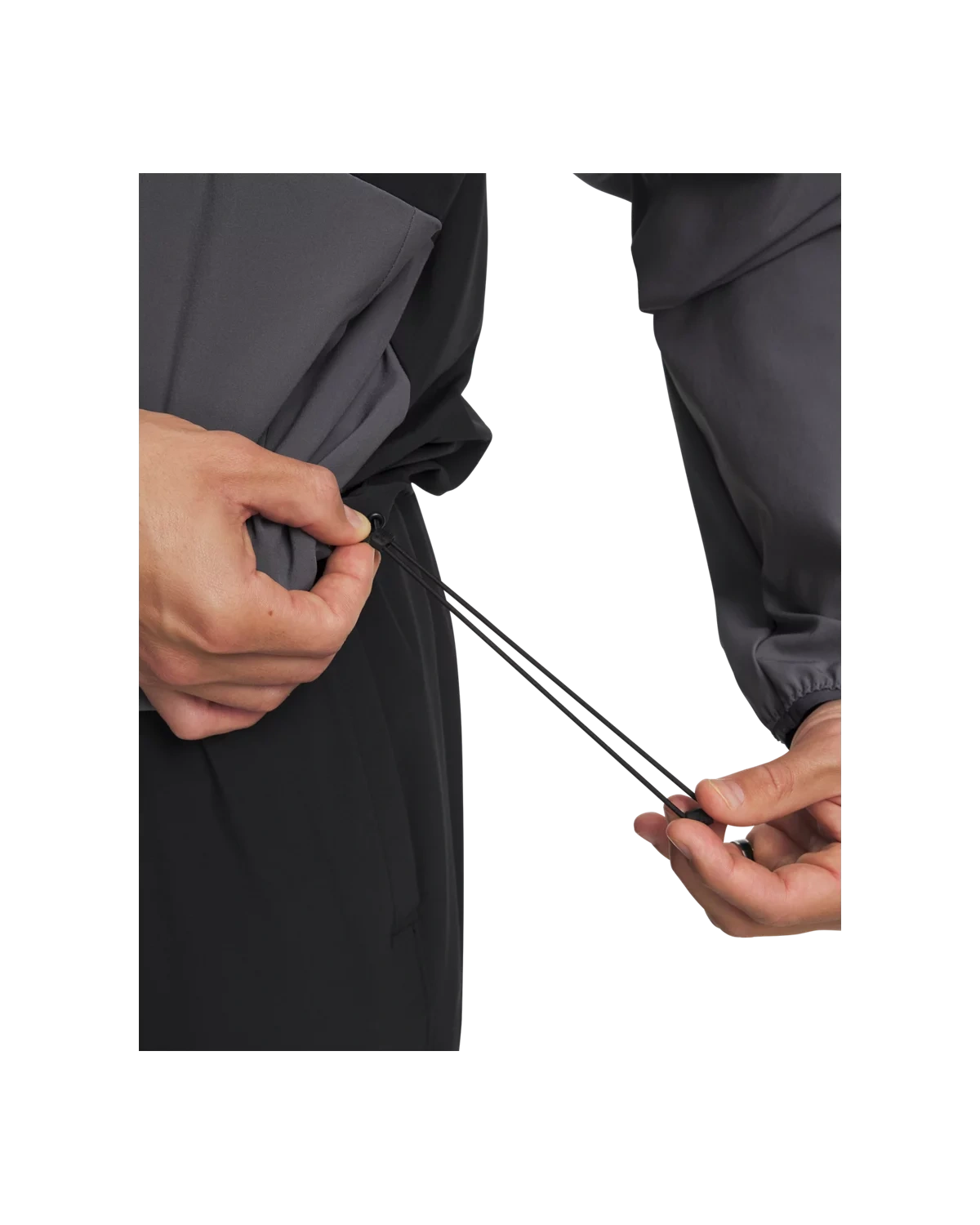 下摆可调节抽绳设计与包边弹力袖口,稳固贴合。