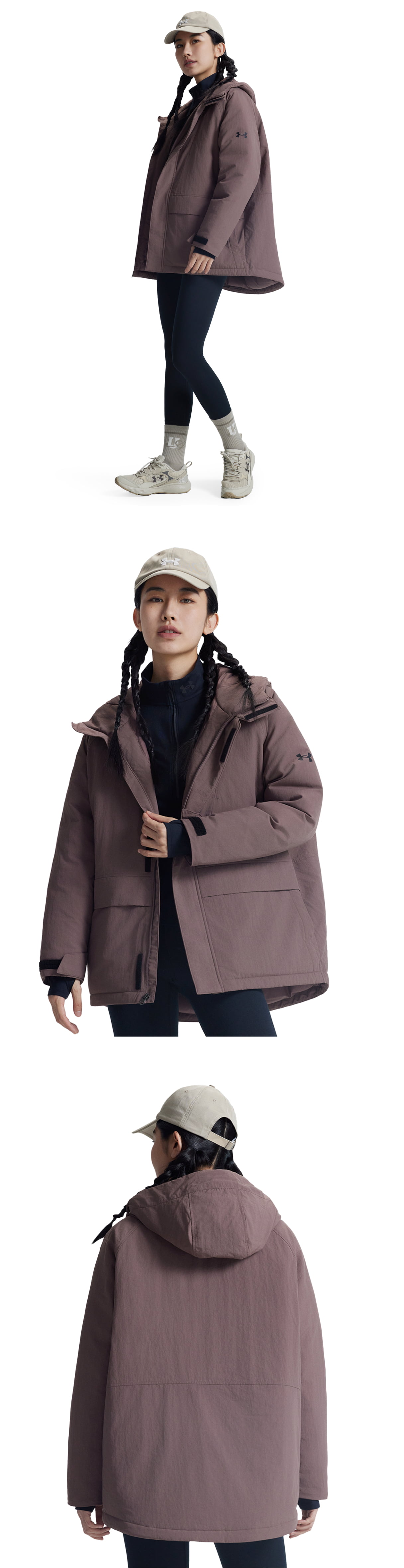 内侧下摆、风帽皆设有可调节抽绳,可自主调节松紧程度。