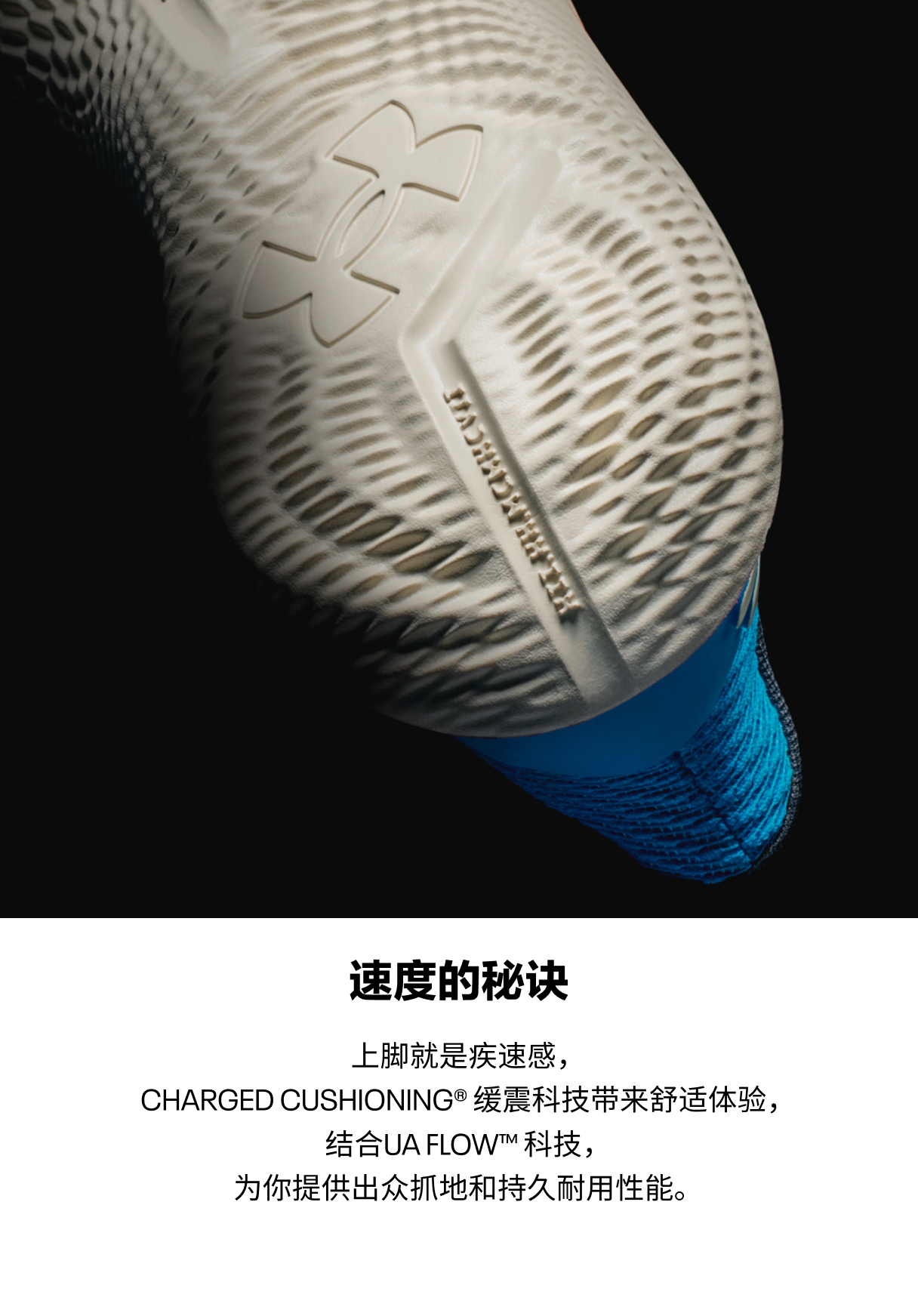 UA Flow外底,柔韧回弹,塑造灵敏脚感,自如驰骋篮球场。