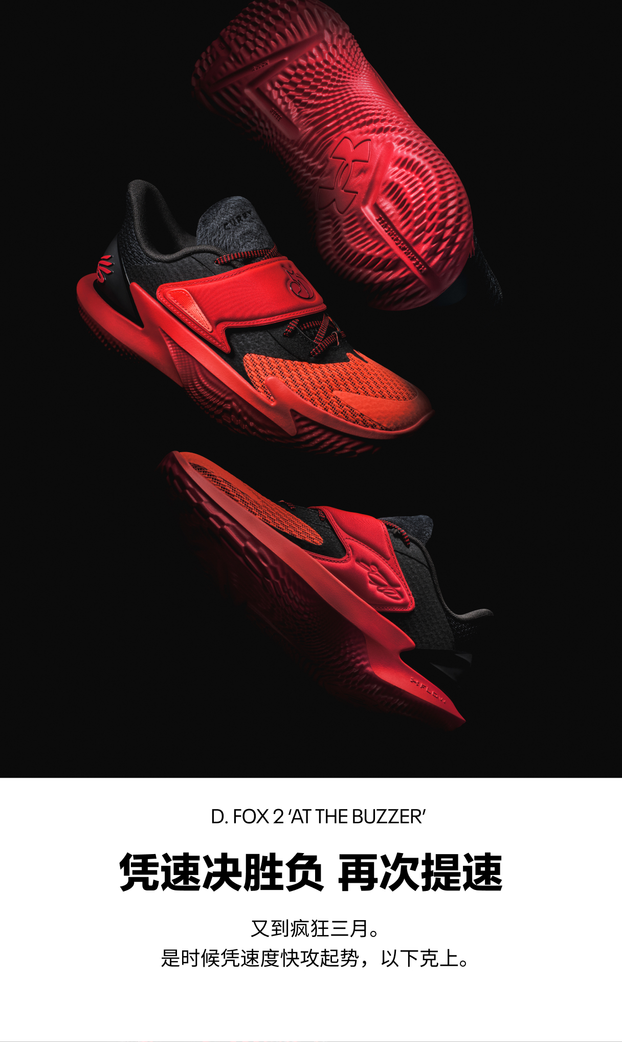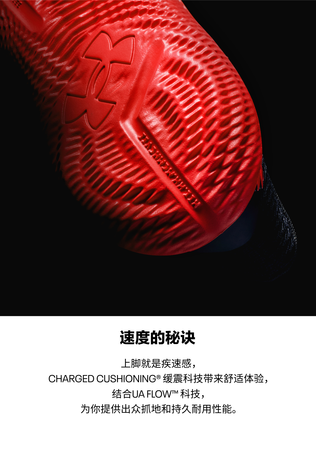 UA Flow外底,柔韧回弹,塑造灵敏脚感,自如驰骋篮球场。