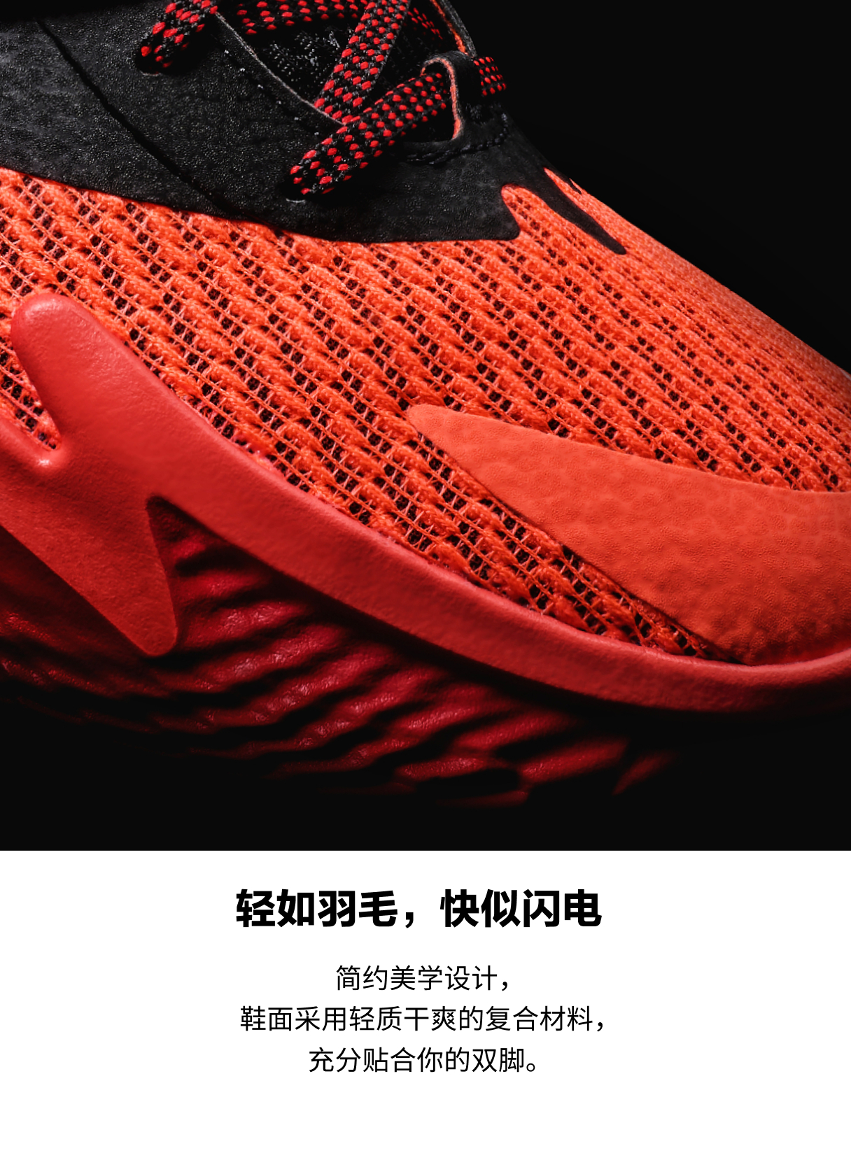 拼接鞋面,关键部位采用网眼设计,有助于提升透气性与舒适度。