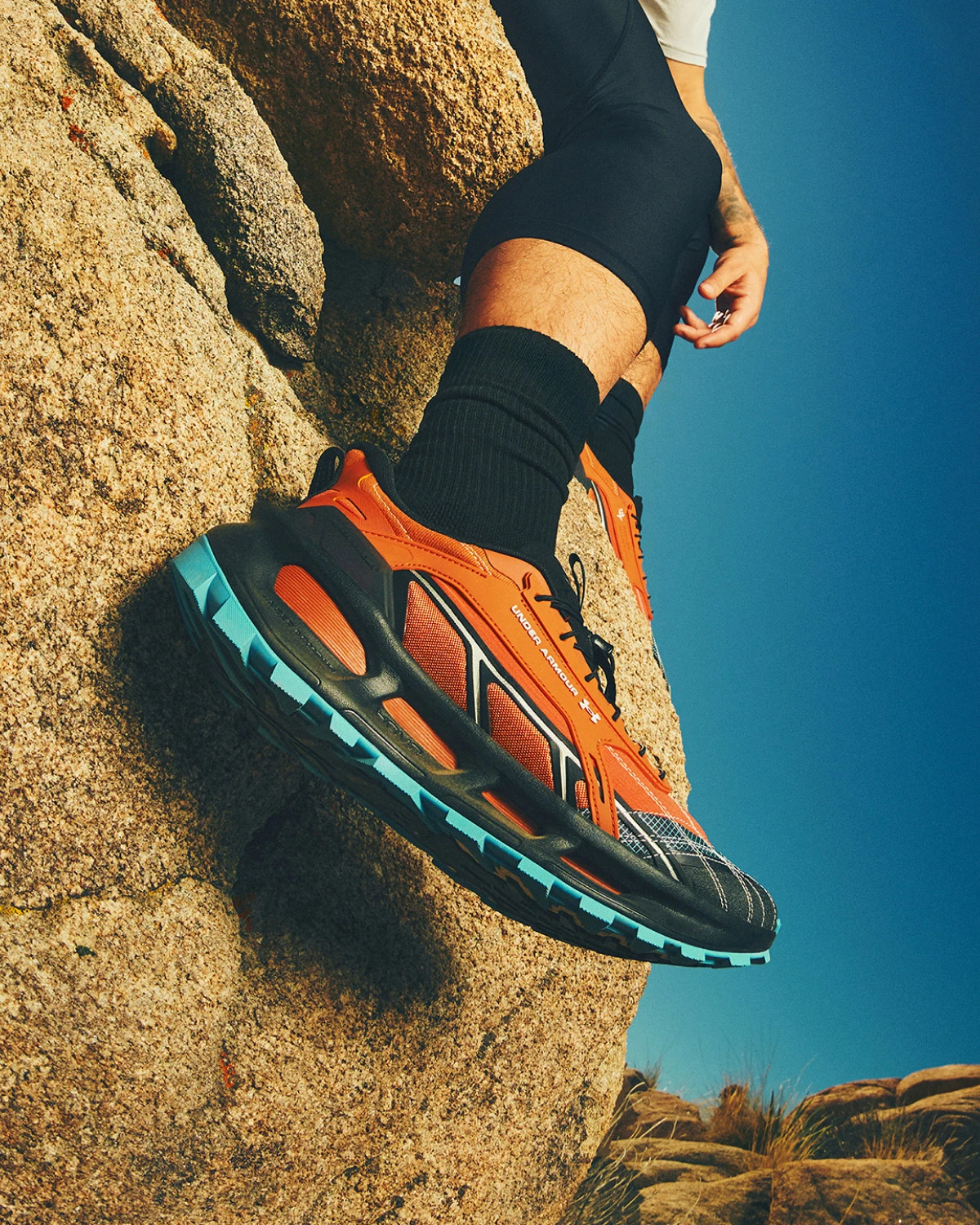 轻质梭织鞋面,可在越野路况中为双足提供良好包裹感。