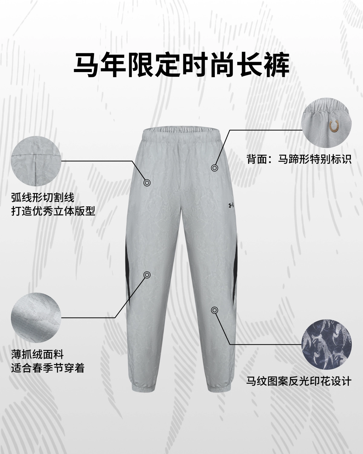 裤腰处设有融合品牌Logo的马蹄铁设计,为新春节日穿搭增添新意。