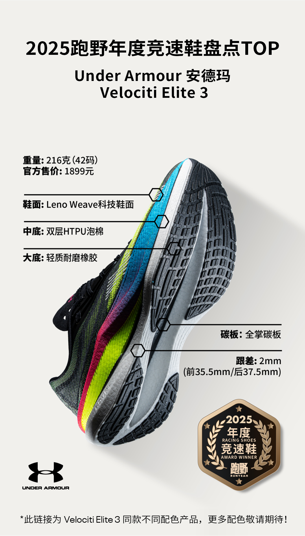 采用复合鞋底构造,HOVR+中底提供灵敏回弹,搭配橡胶外底,带来稳健抓地表现。