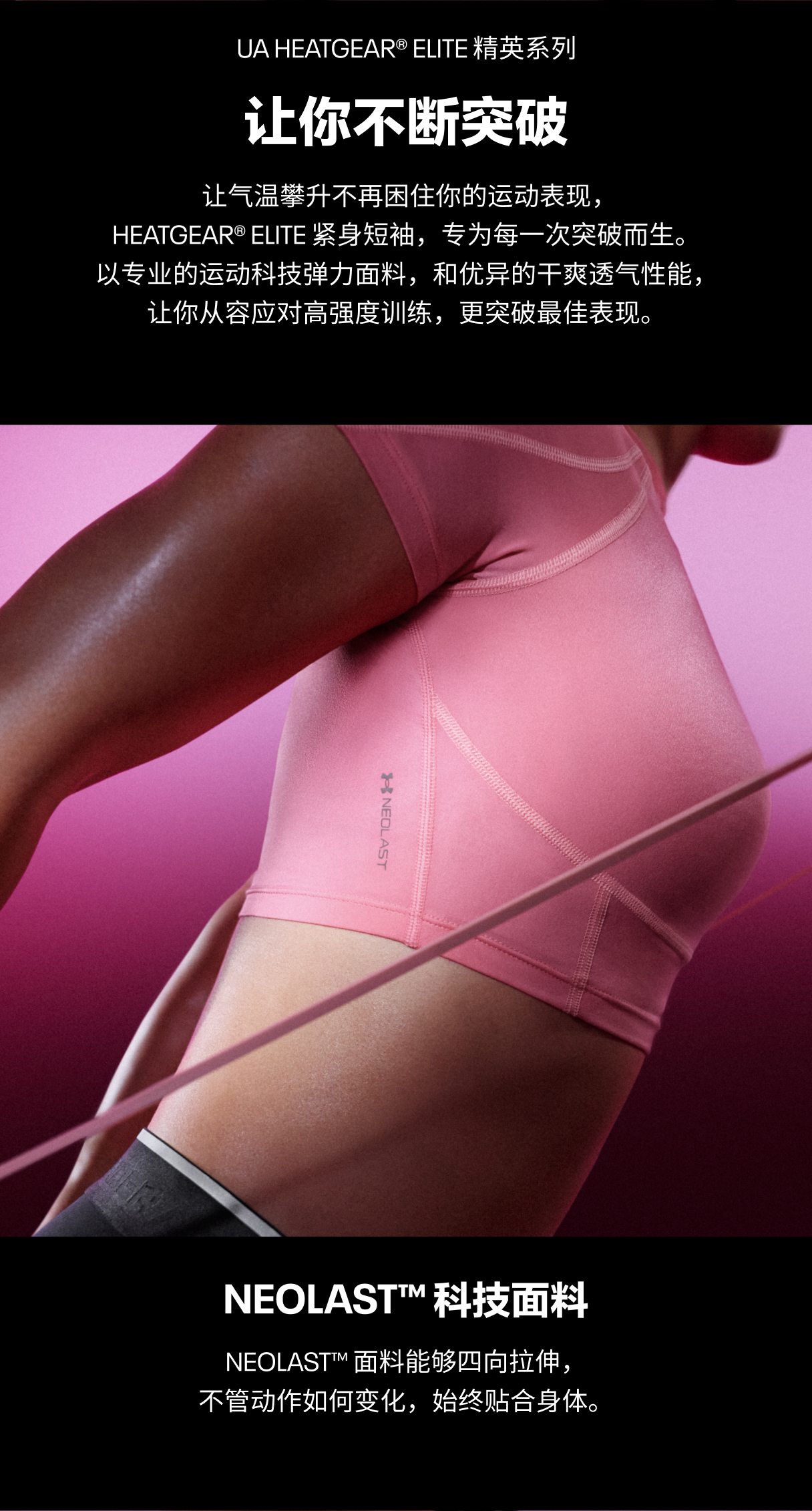 HeatGear®面料柔软轻盈,舒适贴合身体,适合高强度训练叠穿及日常运动穿搭。