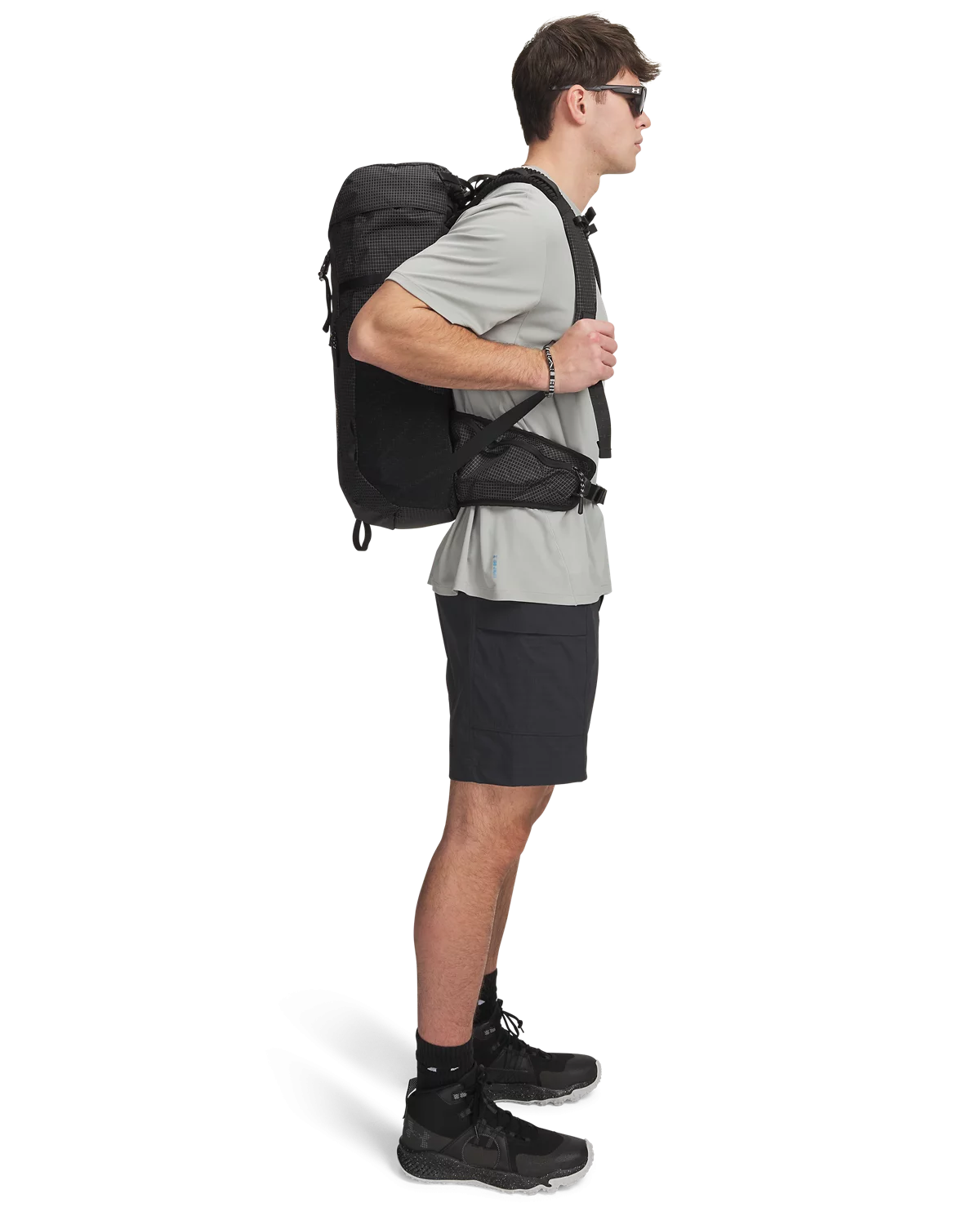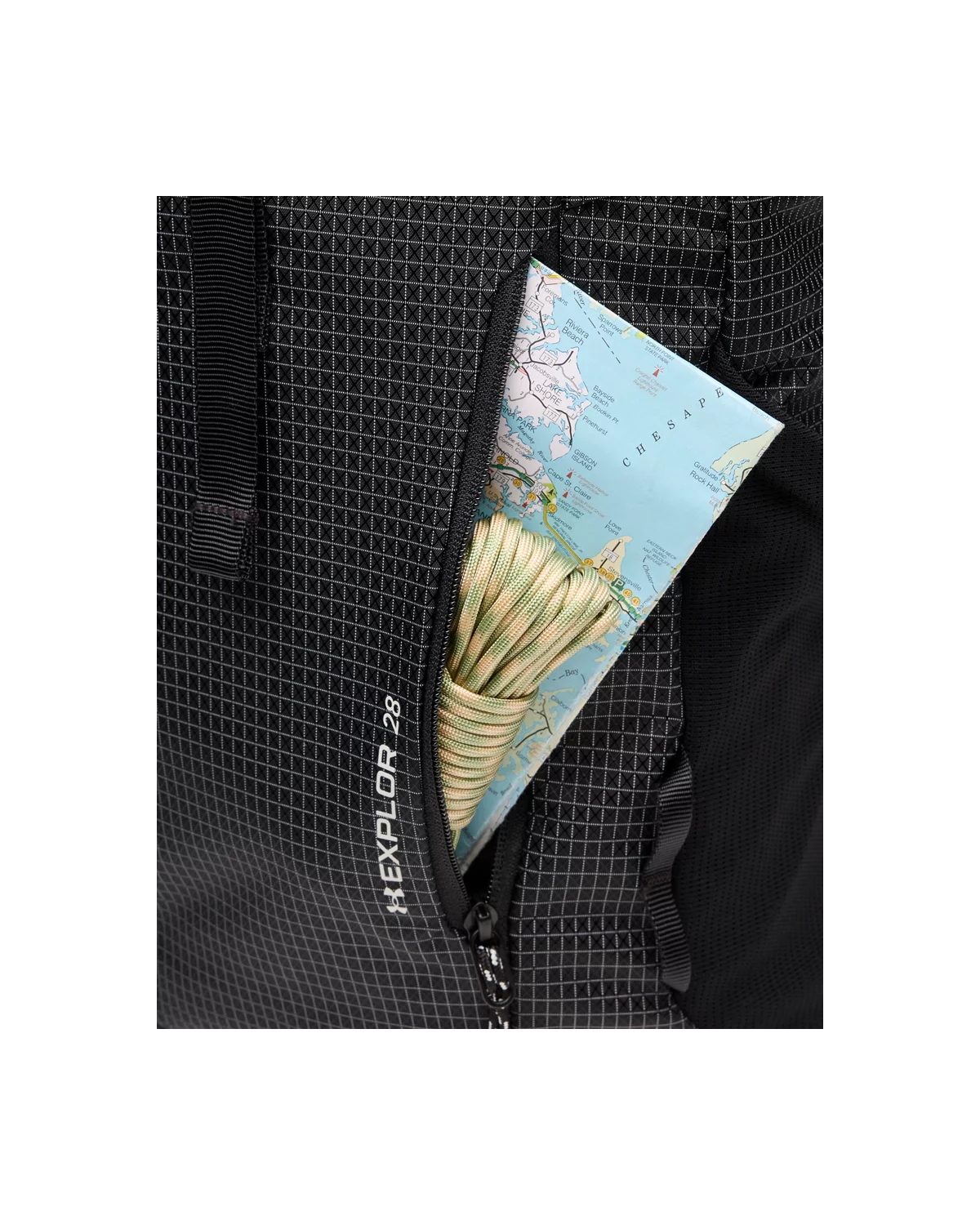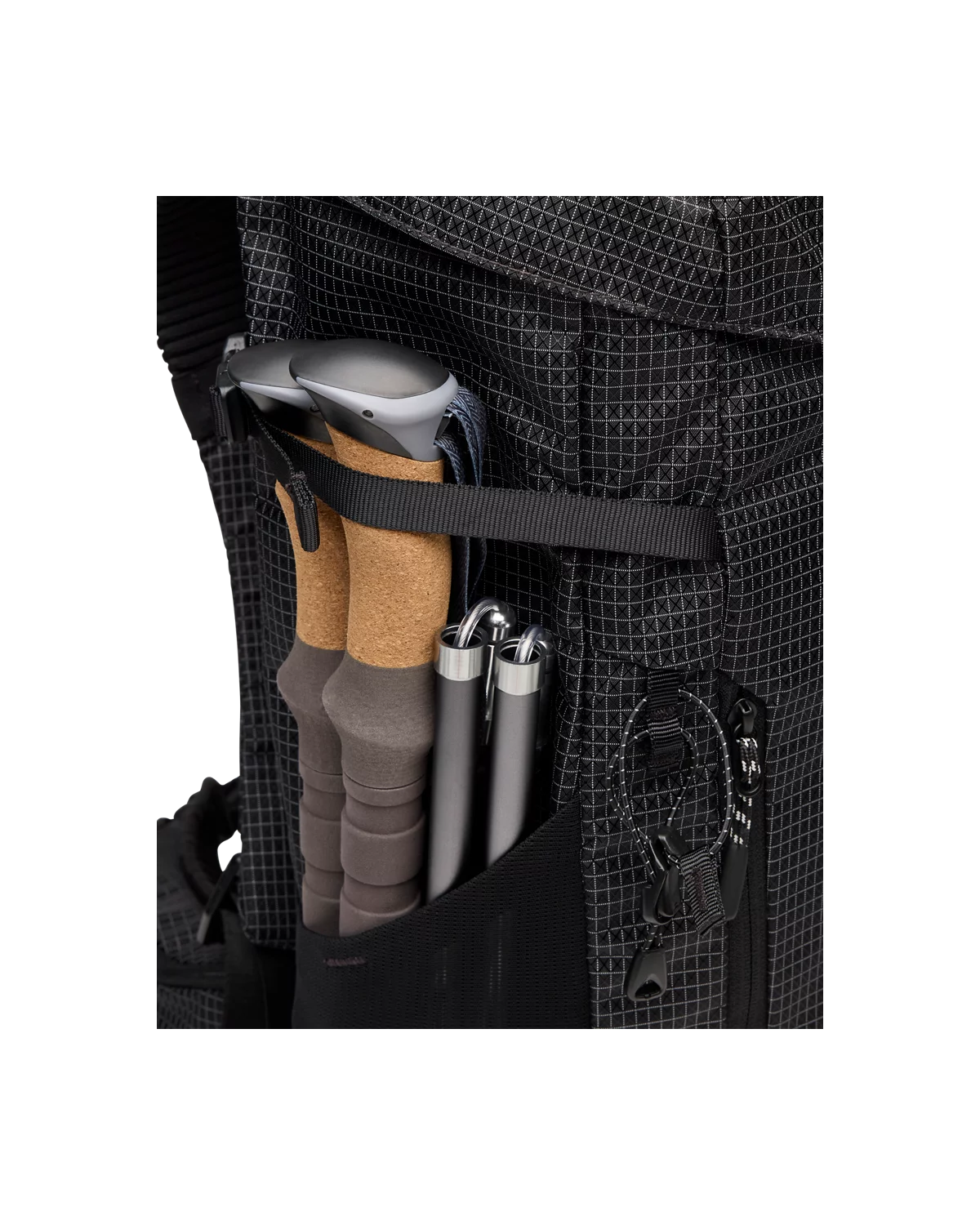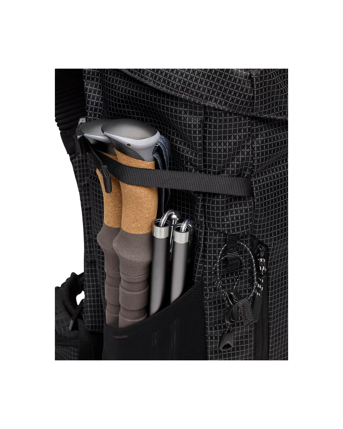 包身两侧各有网眼袋和拉链袋,腰部包袋设有拉链,便于分类收纳。